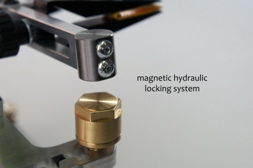 Rama ma długość 200 mm. szybko zdejmuje się z wału. Klipsy nożowe są pomalowane na czarno, aby nie męczyć oczu użytkownika. Minimalna odległość między zaciskami noża wynosi 75 mm podczas pomiaru Na Zewnątrz. Mocowanie ramy odbywa się za pomocą magnetycznych blokad hydraulicznych o specjalnej konstrukcji. Wał może blokować się przed obracaniem.