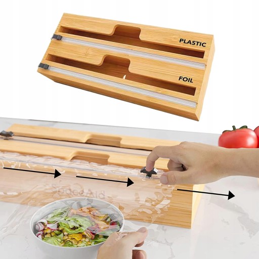 Dozownik folii 2 w 1 z nożem i etykietami do organizera szuflady kuchennej