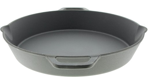 Żeliwne duże naczynie do zapiekania i serwowania dań.