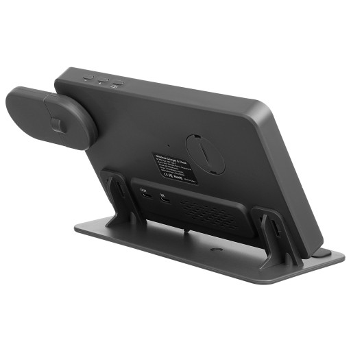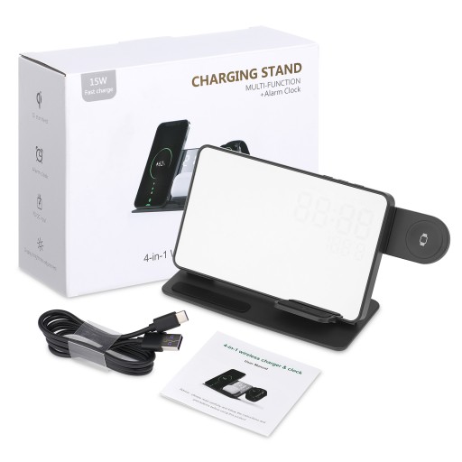 Ten produkt to wielofunkcyjna podstawka do ładowania bezprzewodowego. Obsługuje ładowanie telefonu komórkowego, smartwatchy i uruchamia się w tym samym czasie, a także z cyfrowym zegarem LED i wyświetlaczem, co zapewnia kontrolę nad życiem. Dzięki wielu zabezpieczeniom urządzenia nie są zarysowane podczas ładowania. Zapewnij bezpieczne ładowanie urządzeń.