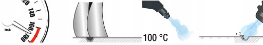 Wytworzona przez urządzenie para wodna zostaje podgrzana do temperatury 100ºC po czym opuszcza pod ciśnieniem dyszę, pozwalając na szybkie i łatwe usunięcie brudu.