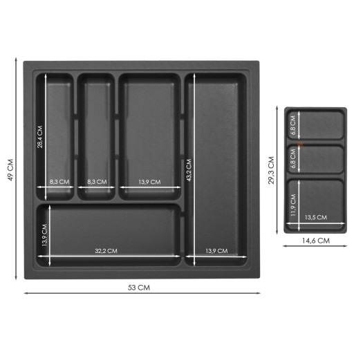 WKŁAD NA SZTUĆCE, ORGANIZER Z TACKĄ DO SZUFLADY 60CM UNIVERSAL LORDLY - ANTRACYT