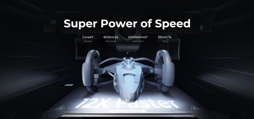 Przyśpieszenie na poziomie 20000 mm/s², drukarka K1 Max potrafi osiągnąć prędkość 600 mm/s w 0,03 sekundy. Jest to jeden z najwyższych wyników wśród drukarek FDM.