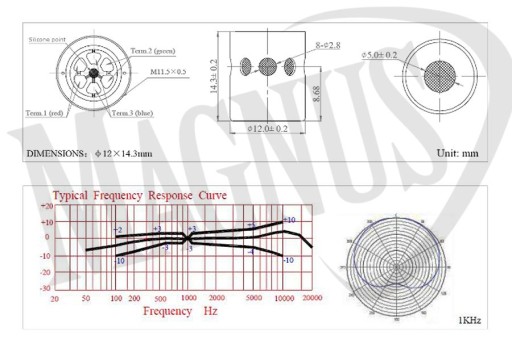 Seria: 21 Zastosowanie: gitara, ukulele Częstotliwość: -47dB ±3dB (0dB=1V/Pa - 1KHz) Max SPL (140 dB) Impedancja: 2.2 KΩ Polaryzacja: unidirectional S/N: 68dB Pasmo przenoszenia: 50Hz - 20KHz Długość kabla: 1 m