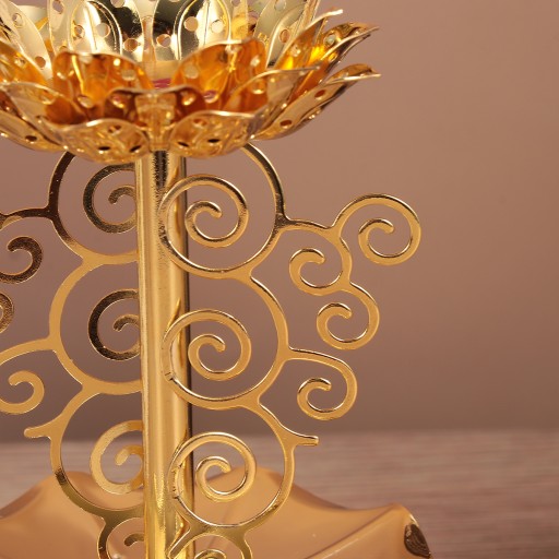 ✅Trwała jakość i praktyczna konstrukcja podstawy pozwalają uniknąć przesuwania się i tarcia. Może sprawić, że wystrój Twojego domu lub wydarzenia zabłyśnie w całej okazałości dzięki świecznikowi wotywnemu ze złota lotosu.
