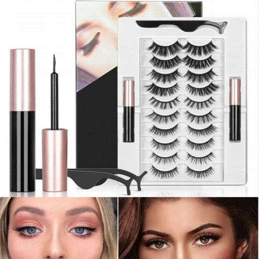 10 par magnetycznych rzęs i 2 x eyeliner, wielokrotnego użytku magnetyczne sztuczne rzęsy 3D