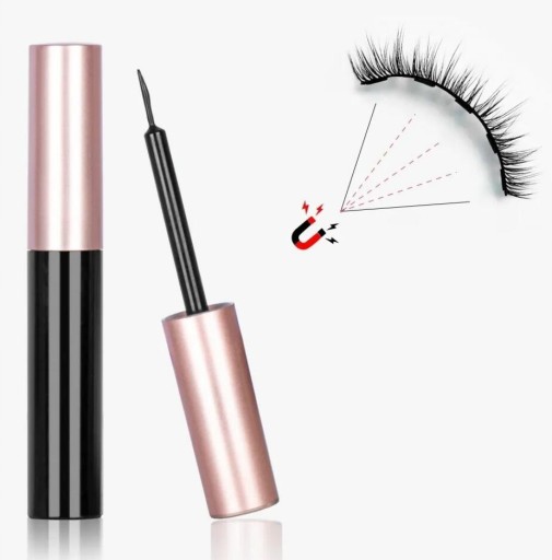 - Eyeliner magnetyczny: Eyeliner zawiera ultrafinalne cząstki magnetyczne, po prostu użyj go jak zwykły płynny eyeliner, poczekaj kilka minut, aż będzie całkowicie suchy, a następnie przymocuj rzęsy magnetyczne.