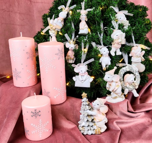 FIGURKA BOŻONARODZENIOWA MYSZ Z CHOINKĄ RÓŻOWA