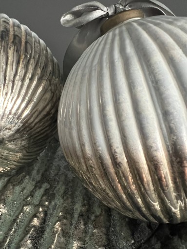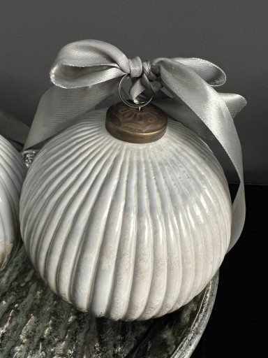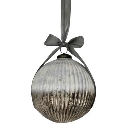 Śliczna szklana bombka w kolorze biało-srebrnym o nierównej fakturze