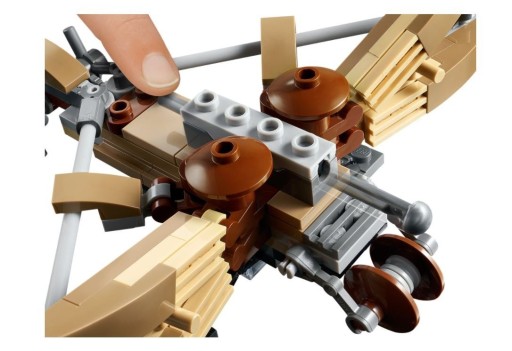 - Śmigacz ma miejsce na minifigurkę LEGO® i sakwę, w której może podróżować Dziecko. W zestawie jest także kryjówka Tuskena do zbudowania oraz sprężynowa balista dla tuskeńskiego rabusia.