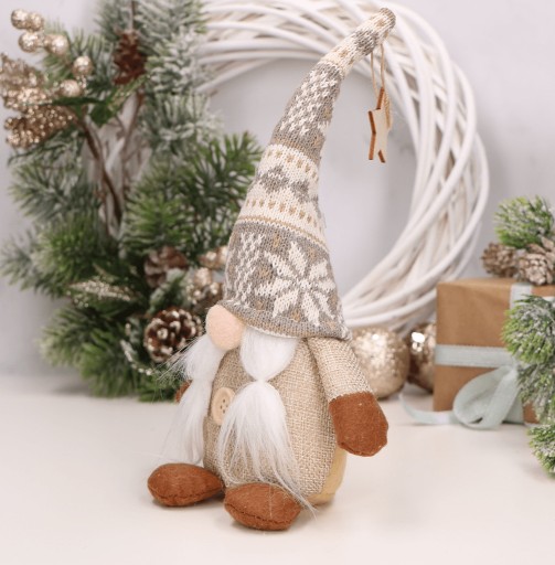 Siedzący skrzat z czapką ozdobioną różnorodnymi pięknymi wzorami i gwiazdką na czubku to urokliwa i wyjątkowa dekoracja, która wnosi do Twojego otoczenia nutę magii i tajemniczości. Ten niezwykły element staje się prawdziwym hitem jesieni, przyciągając uwagę swoim urokiem i wyjątkowym wyglądem.