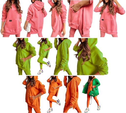 Asymetryczna bluza, tunika, kangurka z kapturem, wyróżniająca się rozcięciami na bokach połączona z prążkowanymi legginsami.