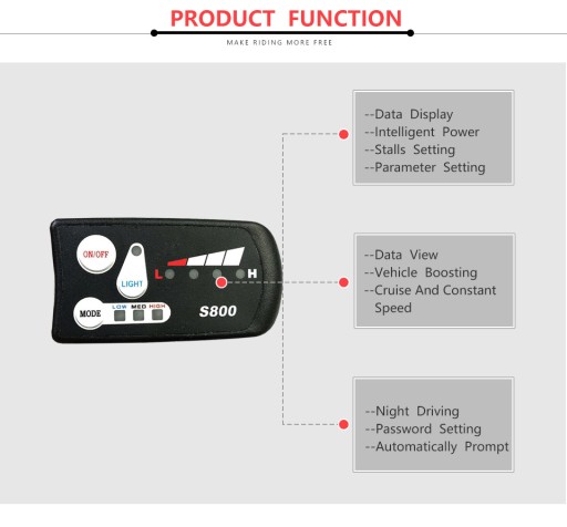 Electric Bicycle Lithium Bicycle LED LCD Meter S800 Display 36V48V Black
