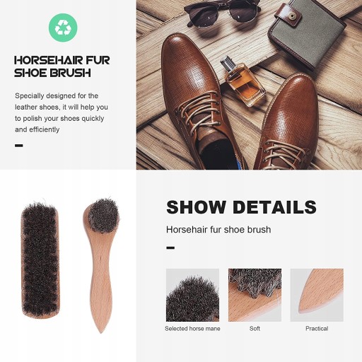 Zaprojektowany specjalnie do butów skórzanych pomoe Ci szybko i skutecznie wypolerowa buty. Zestaw zawiera 2 szt. które mog zaspokoi róne potrzeby. Ta szczotka do butów wykonana jest z wysokiej jakoci materiau który moe by uywany przez dugi czas. Odpowiedni rozmiar dla atwego uytkowania wygodniejszy nie brudzi rk. grzywka do szczotki zapewniajca efekt polerowania bez zarysowań.