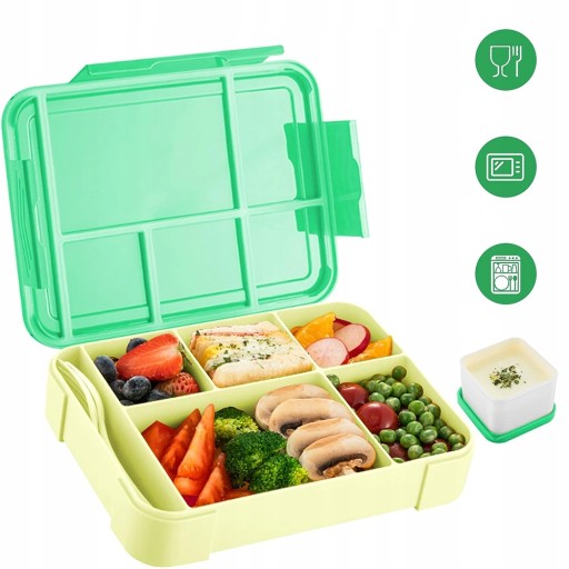 - Nasze śniadaniówki wielokrotnego użytku dla dzieci są łatwe w użyciu, myciu i przechowywaniu. Dzięki naszej puszce możesz również w podróży zwracać uwagę na jedzenie i jednocześnie mieć oko na swój portfel. Z 5 różnymi przegródkami, łącznie ze sztućcami, pudełkiem na sosy, można zjeść cały posiłek w jednym pojemniku.