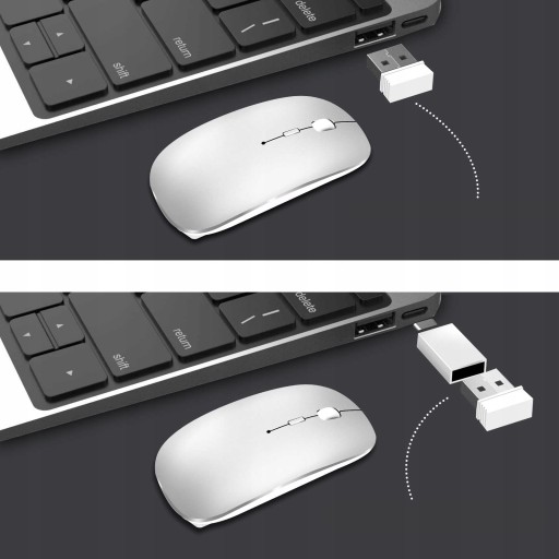 - (Uwaga: jeśli twój laptop to system Mac OS z portem typu C, potrzebujesz adaptera typu C (w zestawie), aby używać tej myszy).