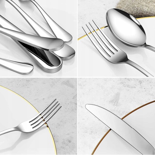 - Czysty i elegancki wygląd, gładkie wykończenie i lustrzane wykończenie sprawiają, że te sztućce zawsze lśnią.