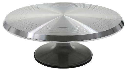 Profesjonalna patera obrotowa do dekoracji ciast i tortów oraz serwowania słodkości. Dzięki swojej wysokiej wadze, patera jest solidna oraz zapewnia swobodny obrót po wprowadzeniu jej w ruch.