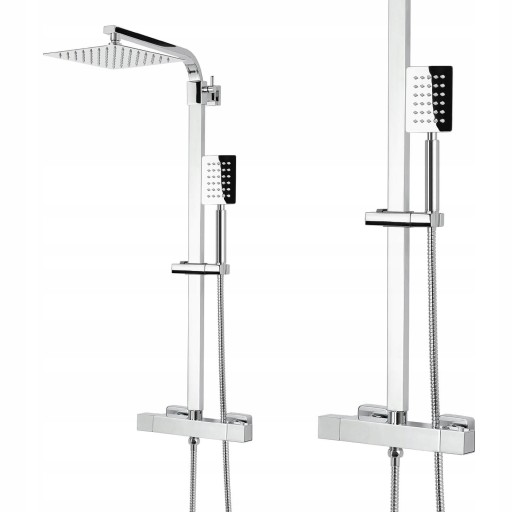 Kolumnę prysznicową z termostatem można montować przy wannie z parawanem lub w przestrzeni kabiny prysznicowej. Mosiądz oraz stal nierdzewna, z których wykonano kolumnę, zapobiegają korozji elementów. Dodatkowo równe, jednolite wykończenie elementów znacznie ułatwia utrzymanie czystości zestawu. Regulowany korpus daje możliwość ustawienia wysokości deszczownicy w zakresie miedzy 80 cm a 123 cm. Kolumna posiada także regulowany wieszak słuchawki umożliwiający regulację kąta nachylenia słuchawki prysznicowej. Dwupokrętłowa bateria z termostatem wykonana jest z chromowanego mosiądzu.