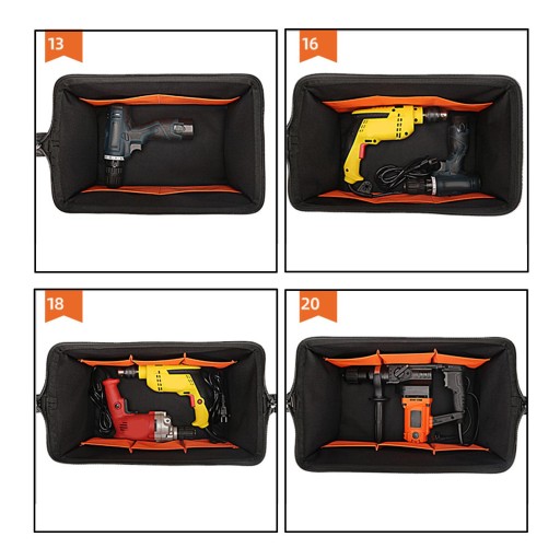 WIELOFUNKCYJNA TORBA NA NARZĘDZIA: Wielofunkcyjna torba na narzędzia ma wiele kieszeni ułatwiających przenoszenie narzędzi ręcznych i małych narzędzi, a duży otwór zapewnia łatwy dostęp do narzędzi.