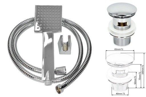 Zestaw łazienkowy SOTBE VORMA bateria wannowa kwadratowa + bateria umywalkowa stojąca+ dodatkowe wyposażenie : korek klik klak, zestaw natryskowy- słuchawka prysznicowa kwadratowa, wąż prysznicowy, uchwyt punktowy.