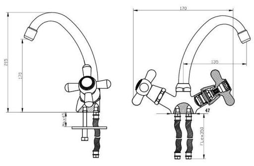 Linia standardowych baterii kuchennych i łazienkowych w stylu retro. Wykonana jest z litego mosiądzu z powłoką chromową. Wyposażona w głowice grzybkowe oddzielnie dla ciepłej i zimnej wody z ruchomą wylewką. Wykonanie zapewnia trwałość i jakość na długie lata. Ta ekonomiczna linia baterii standardowych oferuje praktyczne funkcje oraz łatwe w pielęgnacji kształty i powierzchnie. Baterie ścienne wyposażone w przyłącza mimośrodowe G 1/2.
