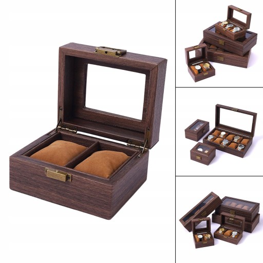 Watch Storage Box Wooden Dustproof Locking Jewelry box Women Gift 2 grids