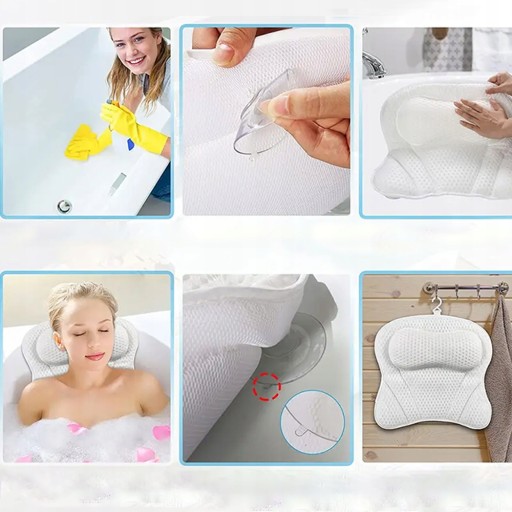 🛀 【6 potężnych przyssawek】: 6 potężnych przyssawek wyjątkowo pomaga wyeliminować powszechne i irytujące poślizgi poduszek do kąpieli, aby stworzyć najbardziej relaksujące wrażenia z kąpieli. Ponadto ta poduszka do wanny ma wystającą małą poduszkę w pozycji głowy, która może mieć dobre wsparcie dla głowy! Oprzyj się na nim, możesz się zrelaksować i cieszyć podczas kąpieli!