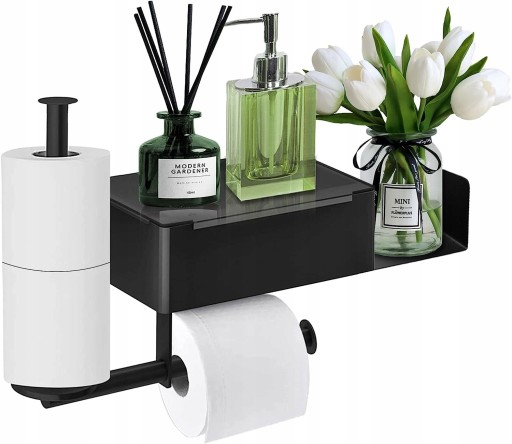 UCHWYT NA PAPIER TOALETOWY Z PÓŁKĄ CZARNY LOFT WC!!!