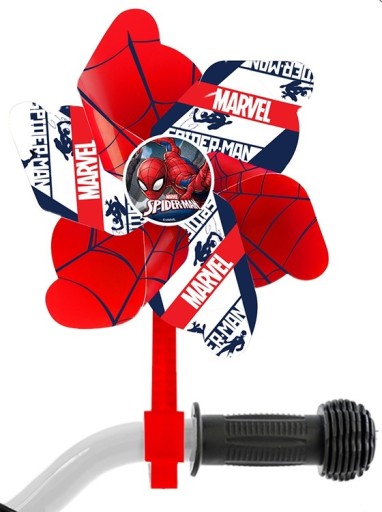 Kolorowe łopatki wiatraczka ze Spiderman, obracają się dynamicznie pod wpływem wiatru, nadając jednośladowi efektownego i radosnego wyglądu