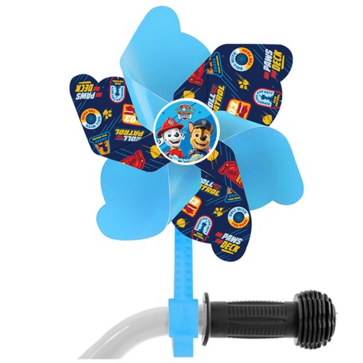 Kolorowe łopatki wiatraczka, zdobiące postaci z Psi Patrol, obracają się dynamicznie pod wpływem wiatru, nadając jednośladowi efektownego i radosnego wyglądu.