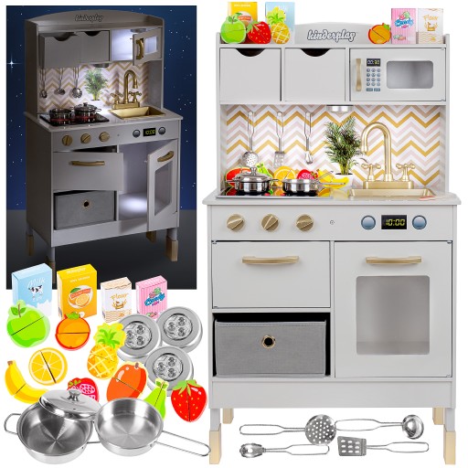 ДЕРЕВЯННАЯ КУХНЯ ДЛЯ ДЕТЕЙ KINDERPLAY LED СВЕТ ЗВУК ПРЕМИУМ МОДЕЛЬ
