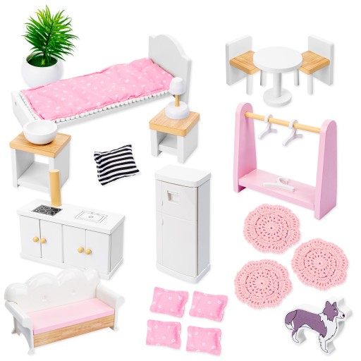 Mebelki dają nieorganiczne możliwości do zabawy i aranżacji poszczególnych pokoi. Wszystkie widoczne akcesoria na zdjęciu są w zestawie m.in.: