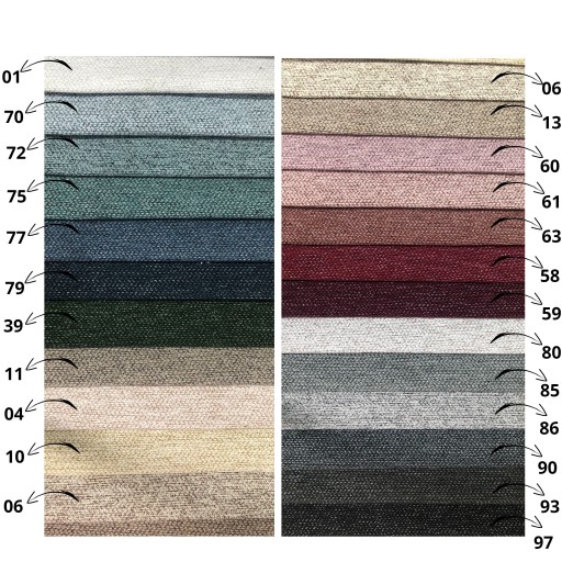 KRONOS/PAROS- tkanina typu plusz o gęstym i przyjemnym w dotyku włosiu. Materiał ma lekko połyskująca powłokę, która nadaje mu eleganckiego wyglądu. To mocna i zwarta tkanina odporna na ścieranie oraz piling.