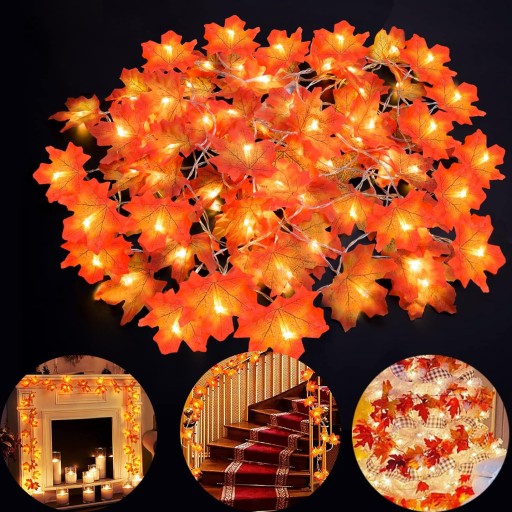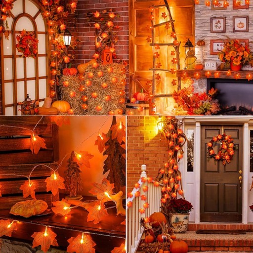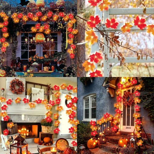 Realistyczne światła jesiennych liści: girlanda z jesiennych liści ma bogate kształty liści i żywe kolory, które wyglądają jak prawdziwe jesienne liście, a girlanda z liści z jasnymi ciepłymi białymi światłami tworzy naturalny jesienny klimat. Idealne dekoracje jesienne / jesienne / dożynkowe / dziękczynne / halloweenowe do domu.