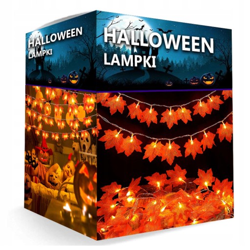 LAMPKI GIRLADNA ŚWIETLNA JESIENNE DEKORACJA 40LED LIŚCIE KLONU 6M