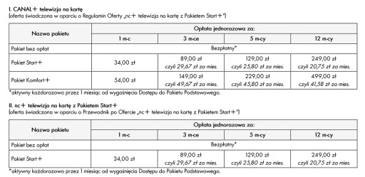 Oferta Canal+ telewizja na kartę z Pakietem Start+ z modułem CAM CI+. Dostęp do ponad 130 kanałów, w tym 46 HD wraz z pełną ofertą ośmiu kanałów CANAL+ na jeden miesiąc.