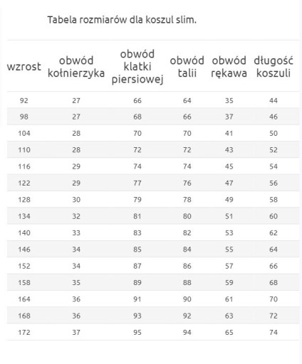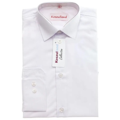 Biała koszula dla chłopca slimowana 95% bawełny model KSZ03 wzrost 134cm. obwód kołnierzyka 32cm.