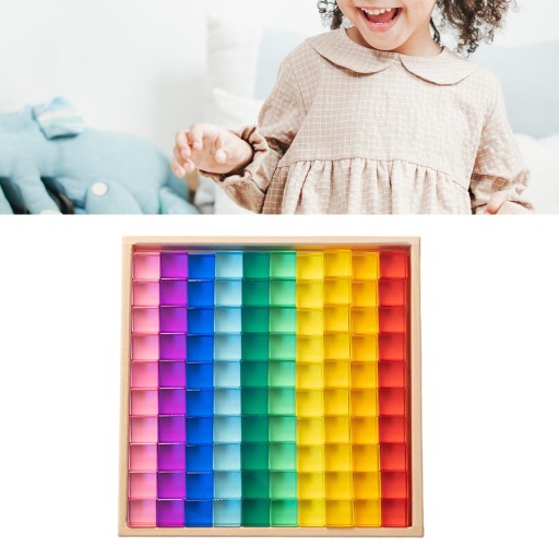 [Materiał]: Zestaw klocków tęczowych wykonany jest z wysokiej jakości materiału akrylowego, a pudełko jest starannie wykonane z litego drewna, które jest bezpieczne i trwałe, gładkie i trwałe.