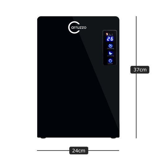 Osuszacz powietrza posiada przejrzysty, prosty w obsłudze, dotykowy panel sterowania z podświetleniem LED w kolorze niebieskim. Dzięki wbudowanemu termometrowi oraz higrometrowi podczas pracy pokazuje aktualną temperaturę na przemian z aktualną wilgotnością powietrza otoczenia w jakim się znajduje.