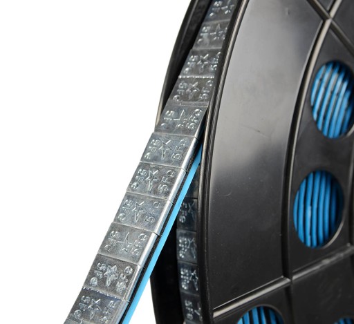 Kaseta zawiera zostało aż 1200 ciężarków 5g najwyższej jakości! Szpula ustawiona przy wyważarce umożliwia błyskawiczne rozwinięcie taśmy i odcięcie potrzebnej ilości ciężarków, a nadmiar bez problemu można zwinąć z powrotem na rolkę. Dodatkowo, pojemnik może być przechowywany w dowolnym miejscu w Twojej wulkanizacji - trwała obudowa chroni zawartość przed uszkodzeniami. Przekonaj się sam, jakie to proste - zamów kasetkę z ciężarkami już dziś!