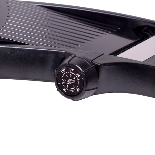 - pokrętło regulacyjne obraca ostrza, zapewniając łatwą regulację grubości szatkowania