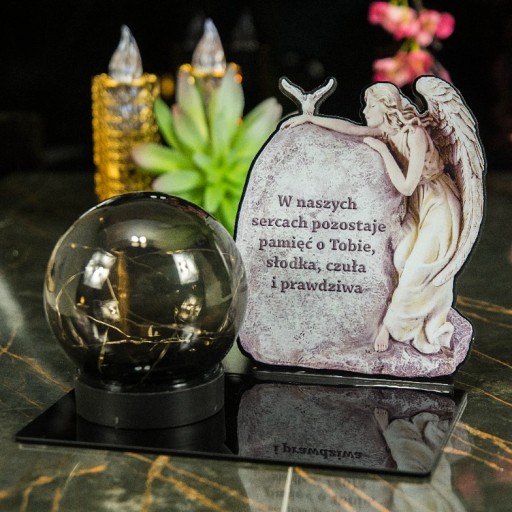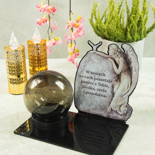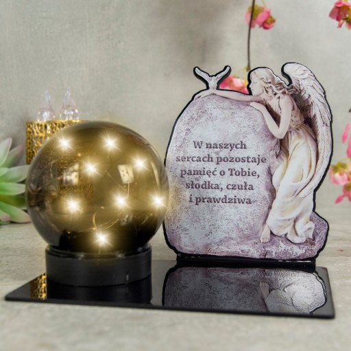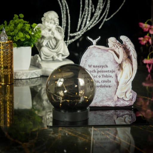 СОЛНЕЧНАЯ СВЕЧА LED СТАТУЭТКА ДЛЯ КЛАДБИЩА МОГИЛА БОЛЬШОЙ ШАР Ангела Черный