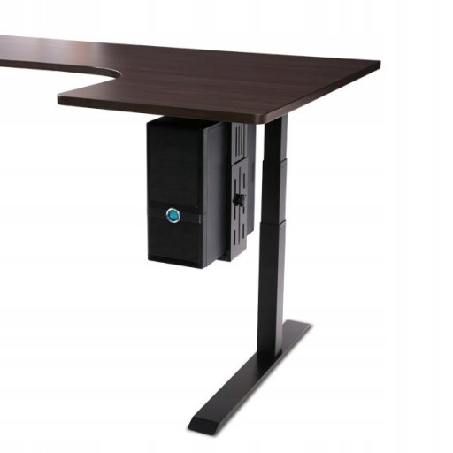 Przy stojącej obudowie komputera na podłodze, ograniczone długości kabli prawdopodobnie nie pozwolą na osiągnięcie wyższych pozycji blatu. Dzięki mocowaniu CH101 do komputera, jednostka centralna PC będzie się unosić razem z blatem biurka. Uchwyt jest montowany bezpośrednio do blatu na spodzie biurka.