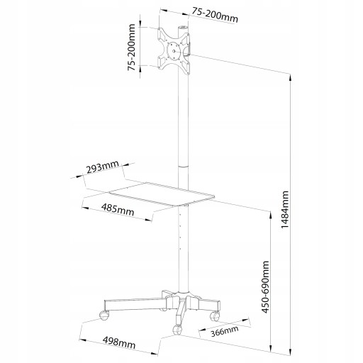 - półka na sprzęt Audio Video z regulacją wysokości w zestawie ze stojakiem