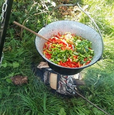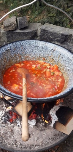 GRILL OGRODOWY + KOCIOŁEK WĘGIERSKI EMALIOWANY 8L + PALENISKO 50CM