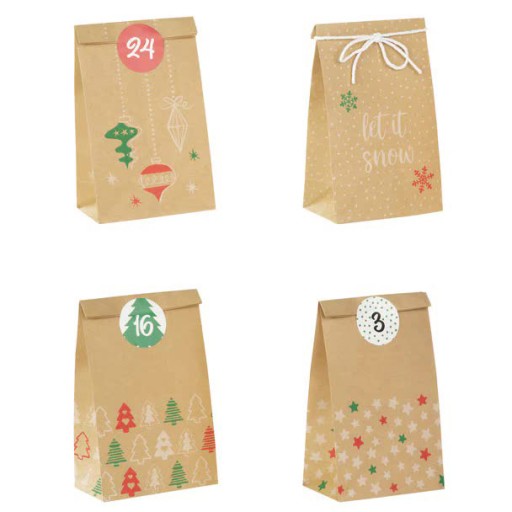 ✅ Zestaw zawiera 24 torebki papierowe ze świątecznym nadrukiem
