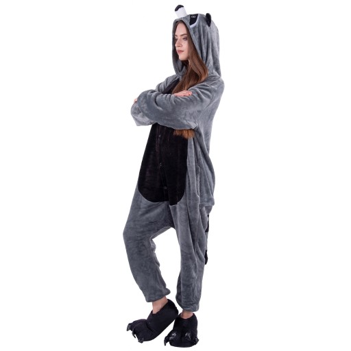 Zachęcamy do odkrycia świata uroku, wygody i wyobraźni z naszą niezrównaną piżamą jednoczęściową, której design został inspirowany jednym z najbardziej uroczych mieszkańców naszych lasów – szopem pracza. To kigurumi to nie tylko piżama do snu, ale również fantastyczne przebranie, które wprawi w zachwyt każdego!
