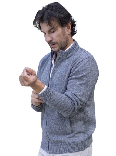 Klasyczny sweter męski rozpinany na zamek z kieszeniami.