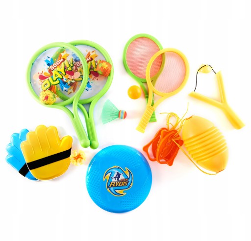 Wspaniały zestaw zabawek dla całej rodziny. Świetna propozycja na aktywne spędzanie wolnego czasu oraz jako pomoc przy organizowaniu rodzinnych spotkań, czy imprez urodzinowych.